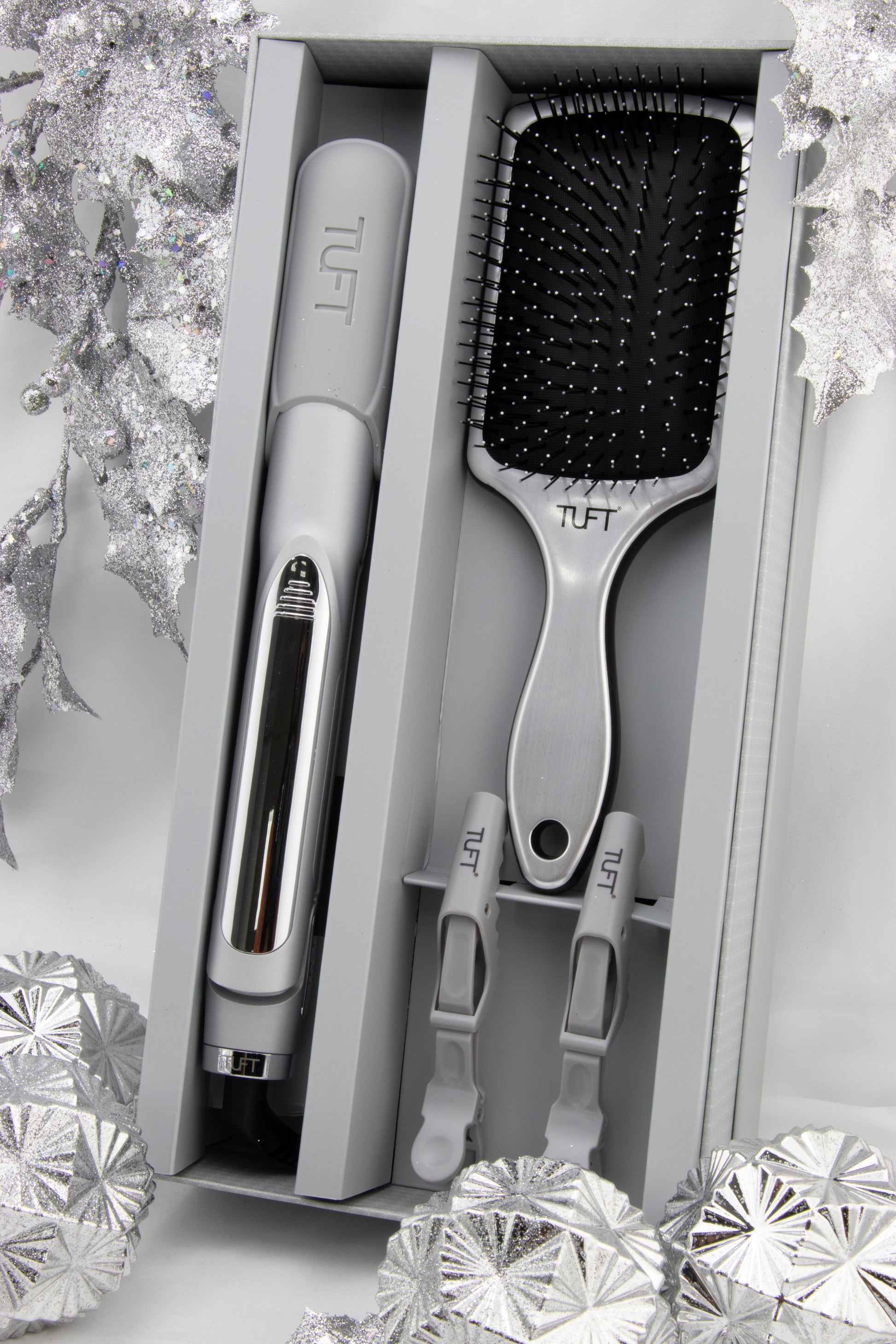 Ogni giftset include al suo interno, uno degli strumenti TUFT, la speciale Paddle Brush in versione silver e 2 T-rex clip.Tutto l'occorrente per creare styling diversi ogni giorno, ovunque ti trovi.